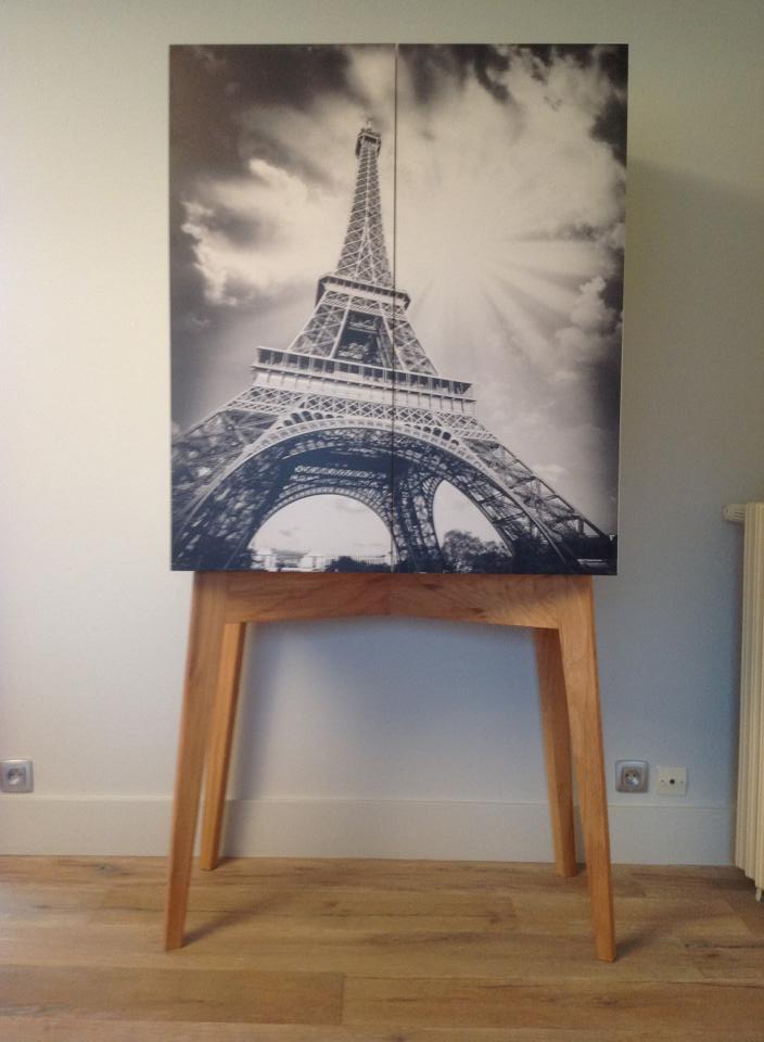 MEUBLE PERSONNALISABLE A L’INFINI IMPRESSION NUMERIQUE DES DEVANTURES PIETEMENT CHENE MASSIF INTERIEUR VERRE LAQUE COULEUR DIM : 1800/900/450